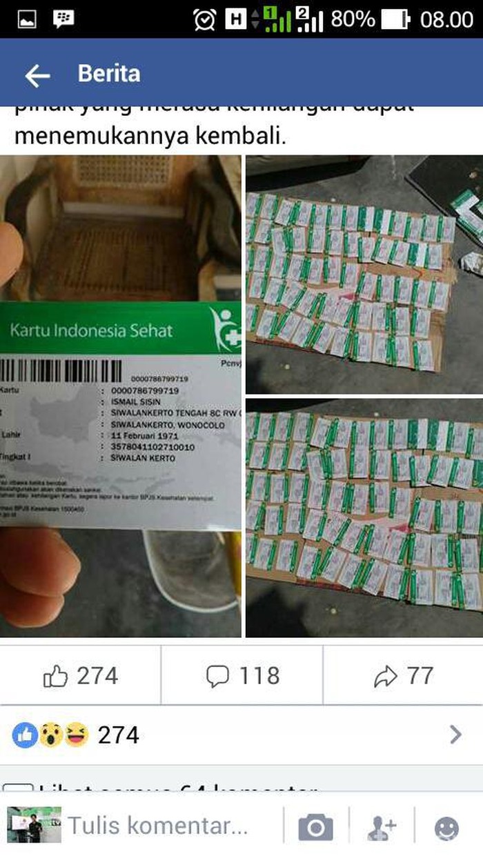 "Saya penasaran, saya ambil satu buah kartu. Ternyata ada tulisan Kartu Indonesia Sehat. Karena saya pikir penting, makanya saya ambil amplop itu dan saya bawa pulang," jelas ibu satu anak.