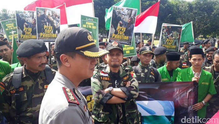 Setelah itu, sejumlah perwakilan massa melakukan orasi. Isinya, mengecam tindakan represif tentara Israel terhadap warga Palestina. Mereka juga mendesak pemerintah berperan aktif dalam penyelesian konflik di sana.
