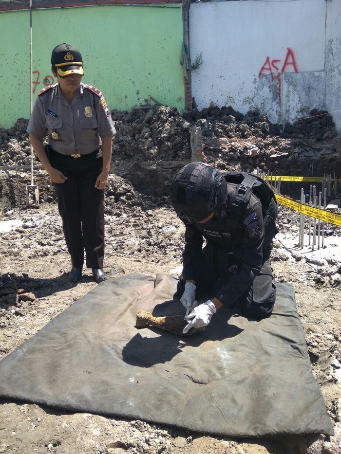 Benda itu diketahui sebagai mortir saat mandor proyek, Rofii, melihat benda itu. Rofii langsung memperingatkan pekerjanya agar tak menyentuh benda yang menurutnya berbahaya tersebut.
