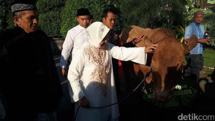 Sementara Kepala Dinas Sosial Kota Surabaya Supomo mengatakan berat hewan kurban yang diserahkan Risma pada seberat 900 kg.