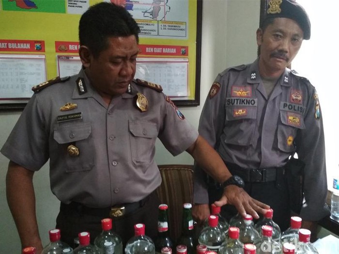 "Dengan barang bukti 39 botol Bintang Kuntul, 29 botol Vodka dan Wisky serta enam botol bir diantaranya bintang kuntul, tomi stanley, vodka, wisky serta sejumlah botol bir," kata Kapolsek Saiful kepada wartawan di kantornya, Selasa (12/9/2017).