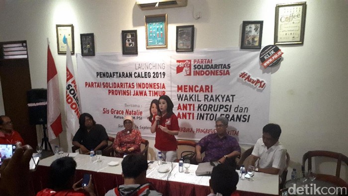 Sementara itu, Ketum PSI Sis Grace Natalie memberikan semangat ke para kader PSI. Grace pun mengajak kepada seluruh elemen masyarakat dari suku, agama, golongan atau ras apapun, untuk ikut bergabung dan menjadi caleg di PSI.