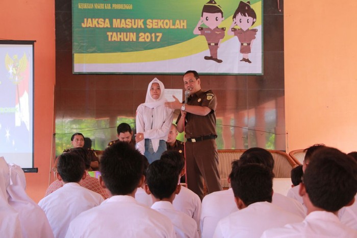 "Program ini bertujuan untuk mengenalkan produk hukum seperti undang-undang serta mengenal keakraban lembaga Kejaksaan dan tupoksinya di kalangan pelajar khususnya pelajar SMA," ujar Kasi Intel Kejari Kabupaten Probolinggo Joko Wuriyanto, Kamis (28/9/2017).