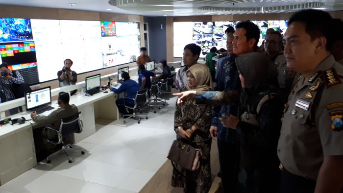 Usai meresmikan Mal Perizinan Kota Surabaya, Asman bersama Risma dan Kapolrestabes Surabaya Kombes Pol Mohammad Iqbal berkeliling melihat pelayanan di Mal Perizinan serta meninjau command center 112.
