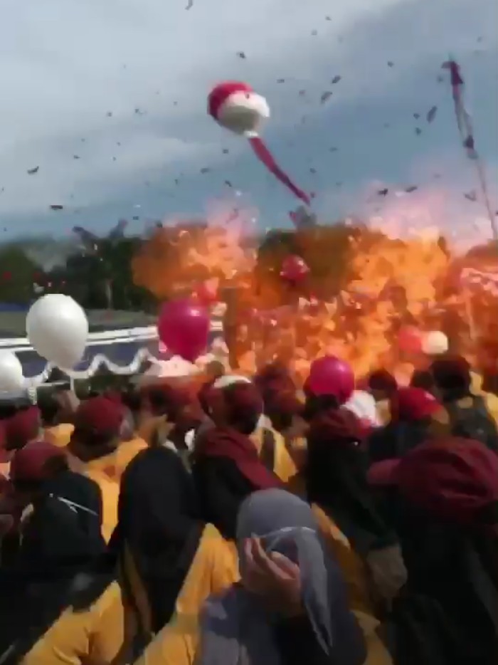 Dalam video yang beredar, ledakan yang terjadi berlangsung begitu cepat. Ledakan terlihat berwarna merah yang mungkin adalah api yang membakar gas yang ada di dalam balon. (iwd/iwd)