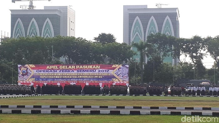 "Operasi Zebra Semeru selama 14 hari mulai 1 - 14 November 2017," kata Dirlantas Polda Jatim Kombes Pol Ibnu Isticha kepada wartawan usai apel gelar pasukan Operasi Zebra Semeru 2017 di Mapolda Jawa Timur, Jalan A Yani, Rabu (1/11/2017).