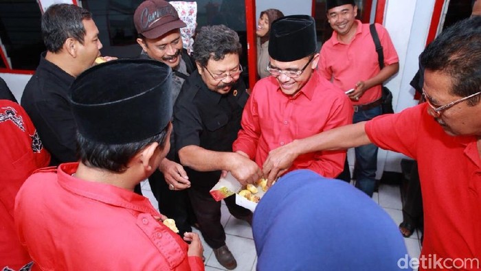 Aksi itu pun langsung diserbu, dalam sekejap pia glenmore laris-manis dilahap para pengurus dan kader PDI Perjuangan Jember. Tawa pun meledak dalam aksi makan bareng pia tersebut.