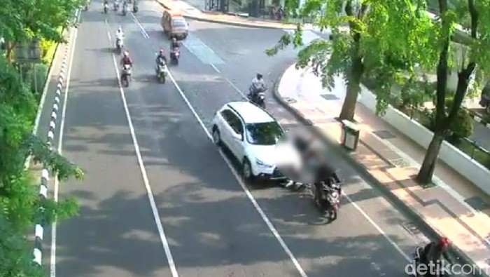 Saat di depan Pizza Hut, tiba-tiba laju mobil seperti tidak terkendali. Mobil yang terlihat melaju kencang itu nyelonong ke lajur kiri yang digunakan pengendara motor.