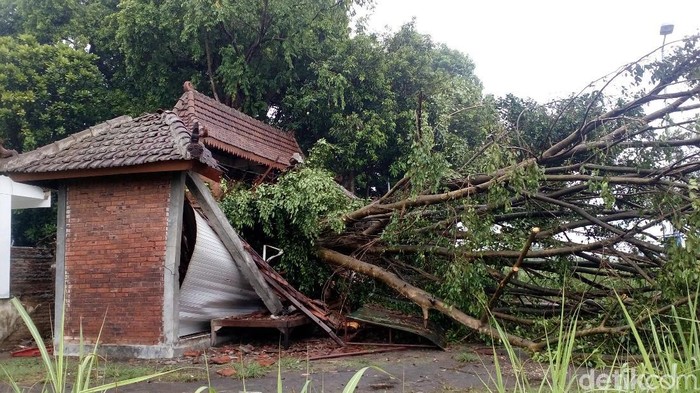 Pohon raksasa setinggi 15 meter ini tumbang menimpa bangunan di sisi timur situs, yakni loket dan dua warung. Bangunan permanen ini ambruk total. Canopy di depan bangunan ini juga porak poranda.