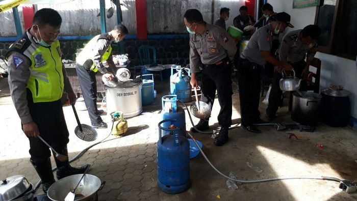 Dapur umum tersebut dibuat khusus oleh Polres Pacitan di kantor Balai Desa Jatimalang, Kecamatan Arjosari. Dalam sehari, dapur umum Polres Pacitan membuat 3.000 nasi bungkus untuk para pengungsi dan relawan.