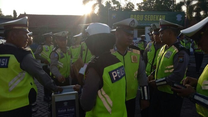 Sedekah dilakukan setelah apel di Satpas Polres Gresik (Foto: istimewa) |
