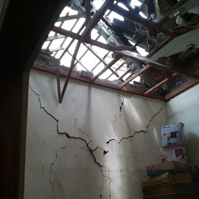 Plafon dan atap jebol setelah terkena ledakan (Foto: istimewa)
