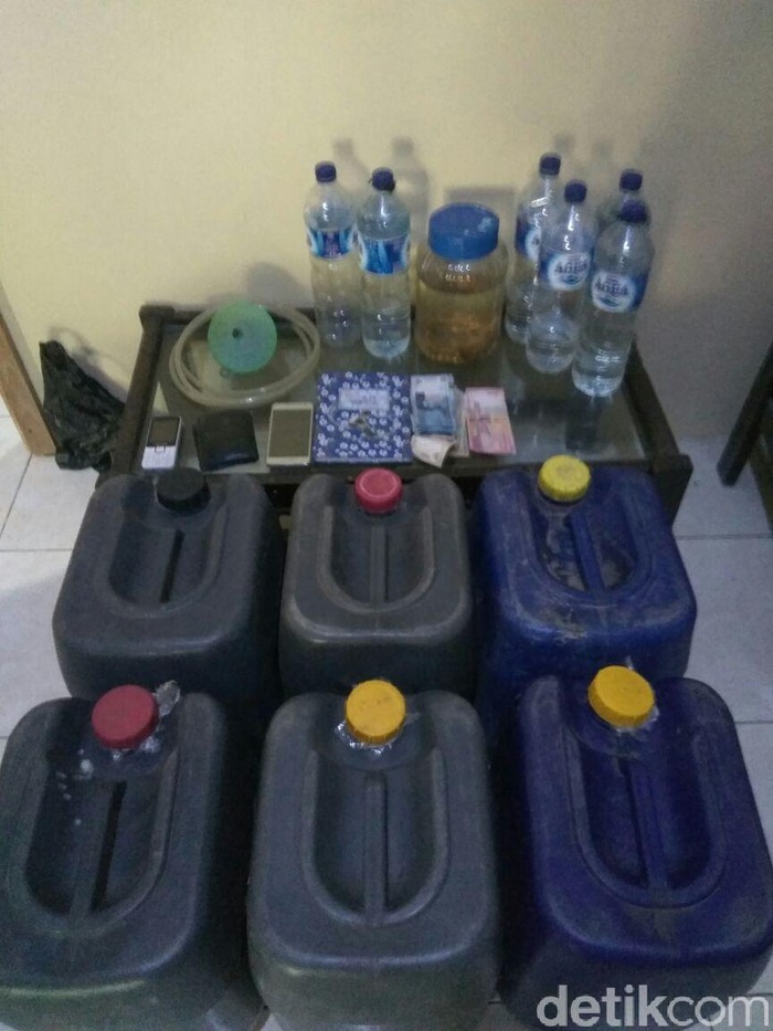 Terduga atas nama Budiono warga Desa Wringinanom, ini diketahui memiliki beberapa air mineral ukuran satu liter berisikan miras arjo, enam buah jerigen 30 literan dan satu buah torong air di kediamannya.