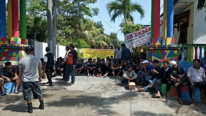 Massa menghalangi petugas pengadilan masuk (Foto: Ardian Fanani)