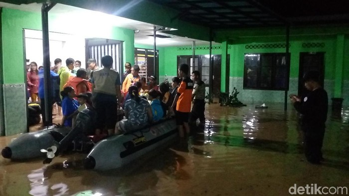 Banjir salah satunya terjadi di Desa Kademangan, Mojoagung. Pantauan detikcom di lokasi, hingga pukul 00.30 WIB, ketinggian air di kampung ini mulai selutut orang dewasa hingga 2,5 meter.