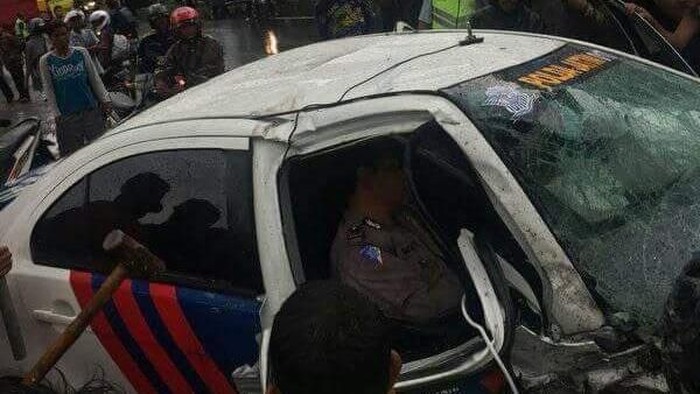 Sopir mobil patwal mengalami patah kaki (Foto: M Rofiq) |