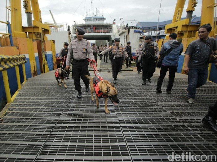 Petugas dari K-9 ini langsung menyisir masuk ke area kapal dan memeriksa kendaraan, penumpang dan barang bawaan. Satu per satu kendaraan yang terparkir di dalam kapal tak luput diperiksa oleh petugas. Di antaranya truk, bus dan kendaraan pribadi.
