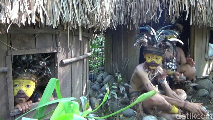 Di kampung primitif ini terdapat rumah yang berbentuk bulat dengan dinding yang terbuat dari kayu serta beratapkan jerami. Tak hanya itu, ada beberapa warga berdandan ala suku pedalaman. Lengkap dengan baju dan wajah yang digambar sesuai dengan adat suku pedalaman. Ditambah lagi aksesoris penutup kepala dan koteka.