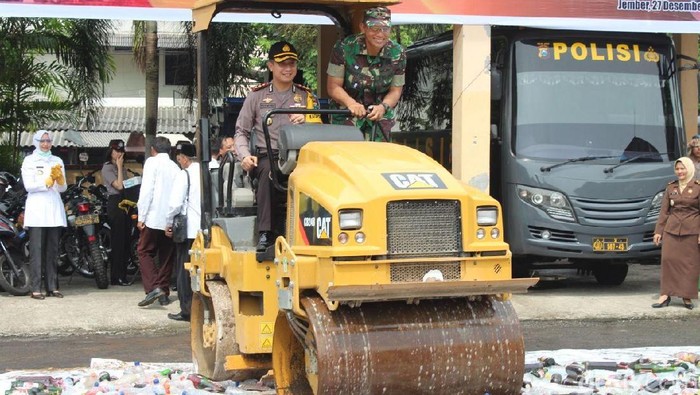 Menurut Kapolres Jember AKBP Kusworo Wibowo, miras yang dimusnahkan sebanyak 5.758 botol, sabu 9,90 gram, ganja 1 Kg dan obat keras berbahaya (Okerbaya) sebanyak 3.257 butir.