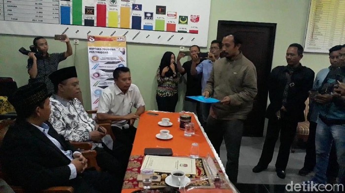 Namun komisioner tetap pada keputusannya bahwa pendaftaran tersebut tak bisa diterima karena tak memenuhi syarat. Para komisioner pun akhirnya meninggalkan ruangan pendaftaran.