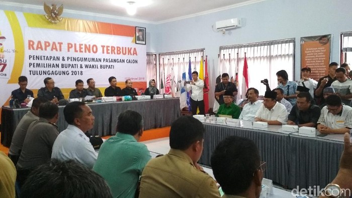 Sidang pleno yang dilakukan di gedung Media Center KPU, Jalan KHR Abdul Fatah IV/3 Tulungagung dihadiri pasangan calon Margiono-Eko Prisdianto. Sedangkan pasangan Syahri Mulyo-Maryoto Bhirowo tidak hadir dan hanya diwakili oleh pengurus partai pengusung.