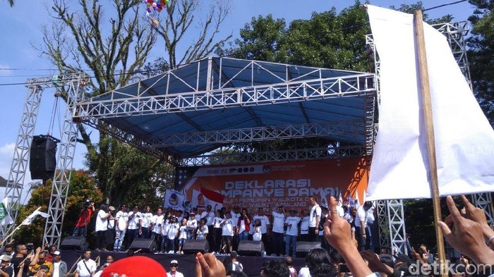 "Mengajak masyarakat untuk tidak anti politik dan mengajak mereka menggunakan hak pilih itu jauh lebih penting," kata Alim saat deklrasi damai Pilwali Malang 2018 dihadiri tiga paslon di Jalan Ijen, Minggu (18/2/2018).