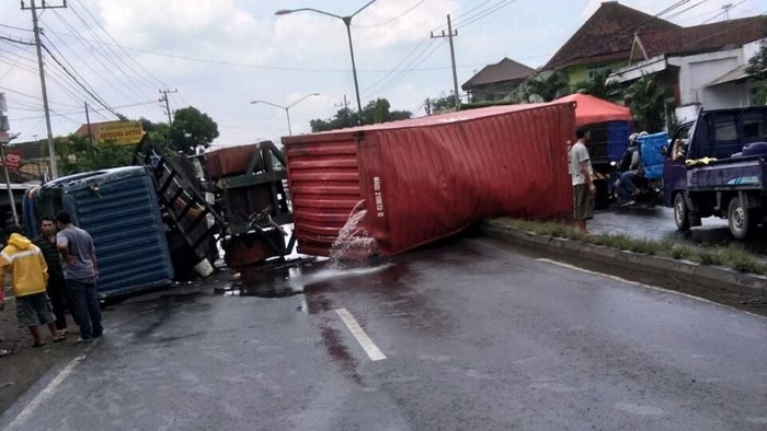Saat bersamaan datang Avanza bernomor polisi N 1445 GR yang melintas dari arah berlawanan. Mobil tersebut terhantam truk sebelum truk tersebut terguling. Badan truk kontainer yang terguling memenuhi seluruh badan jalan sehingga menyebabkan kemacetan dari kedua arah.
