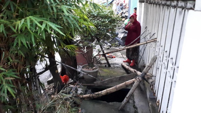 Saluran yang menjadi jujugan Risma berada di kawasan Darmo Permai Barat. Dengan mengenakan kebaya dipadu batik, Risma terlihat mengenakan sepatu boot air warna pink, sambil tak lupa menenteng handy talkie (HT).
