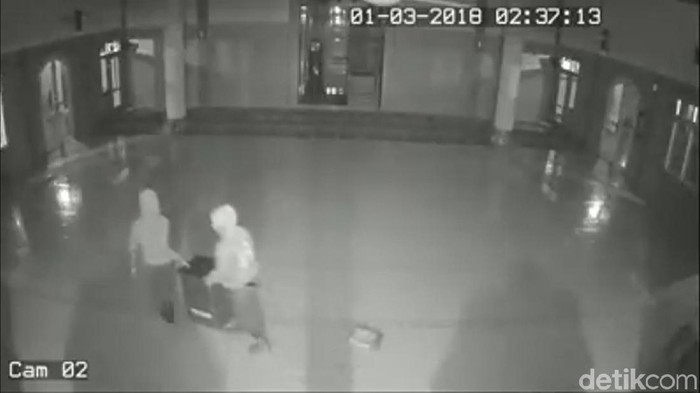 Dalam rekaman CCTV ini, 2 dari 3 pelaku masuk ke masjid pada Kamis (1/3) pukul 02.36 WIB. Kedua pria berjaket merah ini masuk dengan cara mencongkel jendela samping kanan masjid menggunakan besi bekas rem becak.