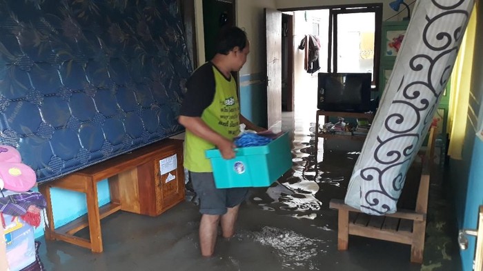 "Tadi pagi pukul 06.00 WIB air masuk ke rumah warga, untung sudah selesai masak. Belum mengungsi ini lihat situasi dulu, kalau nanti belum surut terpaksa nengungsi," tutur salah satu warga perumahan Griya Rahayu Kelurahan Margomulyo.