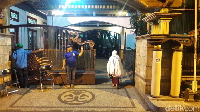 Pasca penetapan tersangka kediaman pribadi Moch Anton di Jalan Tlogo Indah, Tlogomas, Lowokwaru, Kota Malang, terlihat lenggang. Gerbang pagar rumah ditutup, dan beberapa penjaga duduk di depannya.