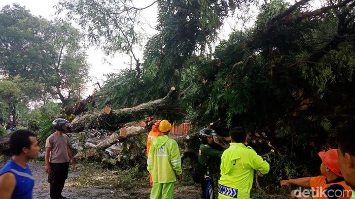 Angin kencang dan hujan deras di Blitar. Pohon-pohon bertumbangan. (Foto: Erliana Riady/detikcom)