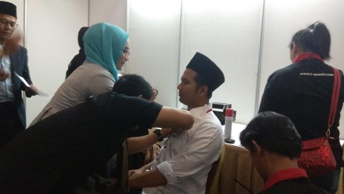 Tak hanya paslon nomor satu, paslon nomor dua Saifullah Yusuf juga mendapatkan sedikit riasan agar tampil segar di depan layar kaca.
