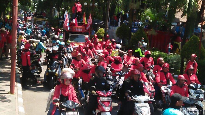 Sementara Sugiono, Ketua Serikat Pekerja Nasional (SPN) Sidoarjo, mengaku mengerahkan 10 ribu buruh mendatangi kantor gubernur Jawa Timur.