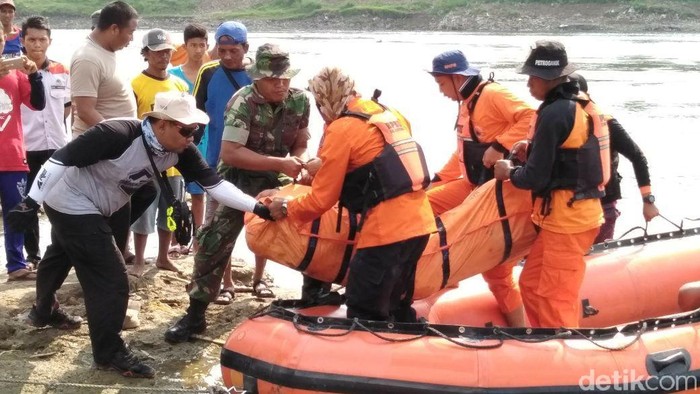 "Sudah ditemukan namun meninggal. Tadi ditemukan sekitar 20 meter dari titik tenggelam dan posisinya masih di dasar sungai. Awalnya kaki korban itu tersentuh kaki tim pencari," kata Andik Sudjarwo, Sabtu (12/5/2018).