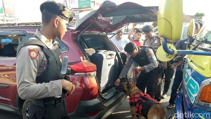 Pantauan detikcom di Pelabuhan ASDP Ketapang, Puluhan polisi melakukan pemeriksaan di pintu masuk dan keluar areal pelabuhan. Mereka melakukan pemeriksaan setiap kendaraan yang akan menyeberang. Tak hanya itu, mereka juga membawa 2 anjing pelacak, untuk mendeteksi barang bawaan kendaraan tersebut.