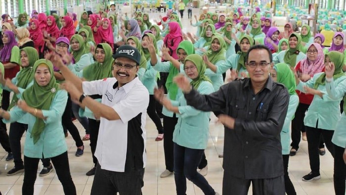 Sambutan hangat diberikan para buruh ketika Gus Ipul tiba. Tak hanya berjabat tangan, Gus Ipul juga diajak selfie bergantian. Para buruh juga memberikan tarian khusus penyambutan bagi Gus Ipul.