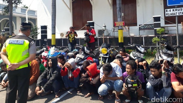 "Tadi pagi habis subuh ada kegiatan rutin yang dilakukan menyasar ke lokasi-lokasi yang dimungkinkan terjadi pelanggaran baik mercon atau balap liar. Tadi ternyata ada di Jalan Demak diamankan 27 motor berikut 43 pengendara yang saat itu sedang melaksanakan kegiatan balap liar," ujar Kabag Ops Polrestabes Surabaya AKBP Bambang Sukmo Wibowo di Polrestabes Surabaya, Jumat (1/6/2018).