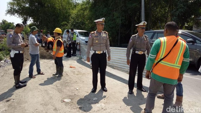 "Rencana kita akan buat rekayasa lalu lintas agar kemacetan mudik Lebaran tidak terjadi. Pekerja proyek juga memasang seng sebagai tanda rambu rambu," tambahnya.