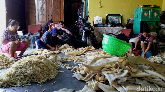 "Setelah dijemur hingga kering, potongan kulit dialup-alup sebanyak dua kali. Proses ini menggoreng kulit hingga menjadi krecek rambak," paparnya.