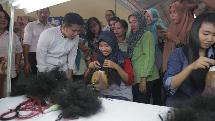 Ardian, salah satu karyawan di perusahaan pembuat rambut sintetis ini menuturkan bahwa poster yang dibuatnya merupakan inisiatif pribadinya untuk mendukung Emil dalam Pilgub Jatim.