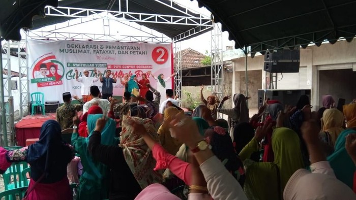 Sekitar seribu lebih warga berkumpul di bawah tenda pada sore menjelang buka puasa. Warga berasal dari Muslimat, Fatayat, petani, dan masyarakat umum lainnya. "Kami patuh dengan imbauan para ulama sepuh, yang meminta umat untuk membantu dan memilih Gus Ipul-Mbak Puti," kata Dian.