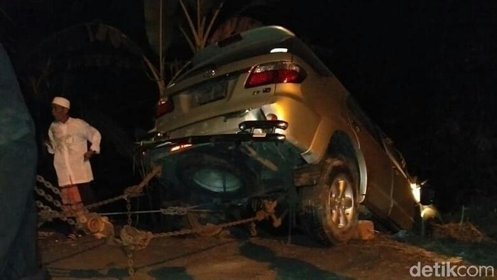 Akibatnya, mobil yang hanya berisi dua orang itu langsung terbalik di dasar jurang. Sejumlah kendaraan lain yang melintas di jalanan sepi dan berliku-liku itu mengetahui hal tersebut dan segera memberi pertolongan.