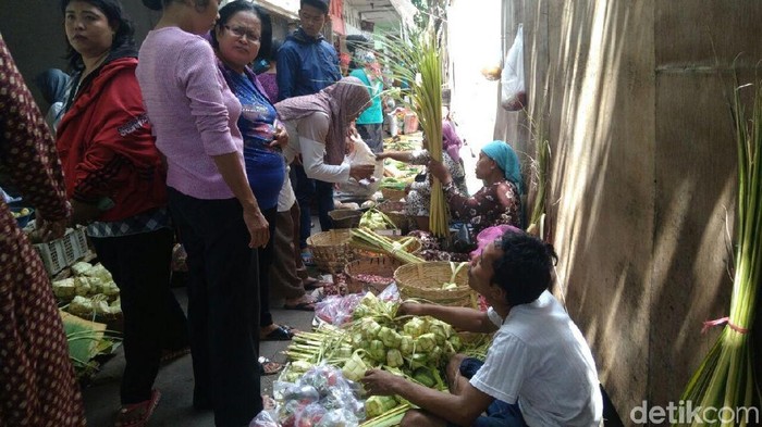 Dari pantauan detikcom, di pasar Baru Kota Probolinggo di Jalan Panglima Sudirman terlihat banyak pedagang janur dadakan. Dagangan mereka diserbu pembeli.