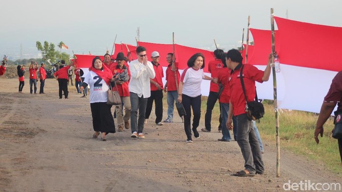 "Dalam rangka memperingati Bulan Bung Karno, PDIP Jatim dan Taruna Merah Putih membentangkan bendera merah putih sepanjang 1.218 di atas tanggul lumpur," kata Kusnadi, Ketua PDIP Jawa Timur di atas tanggul lumpur Sidoarjo, Sabtu (23/6/2018).