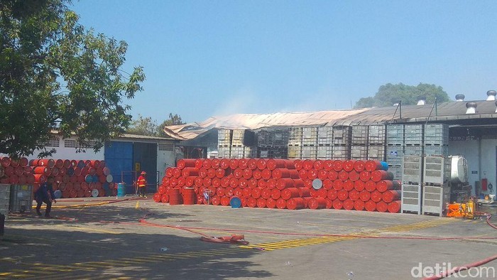 Di lokasi, asap yang tadinya membumbung tinggi berwarna hitam kini sudah berganti menjadi asap putih. Namun beberapa petugas tidak memperbolehkan warga dan wartawan yang meliput untuk masuk ke area gudang maupun halamannya.