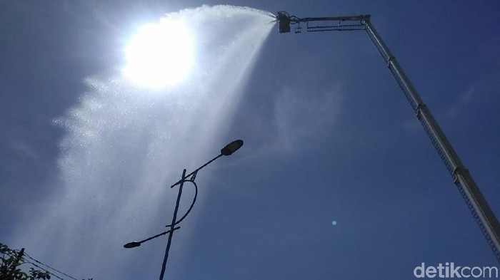 "Api berhasil kita padamkan. Sekarang kita gunakan bronto skylift selain untuk pembasahan di titik api juga untuk menetralisir sekitar areal kebakaran. Selain itu juga melatih memfungsikan alat baru ini yang ternyata efektif digunakan di pemukiman padat penduduk," tandas Irvan. (fat/fat)
