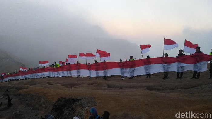 "Ini merupakan salah satu cara yang kami memperingati kemerdekaan negara kita," kata Kapolres Bondowoso AKBP Taufik Herdiansyah Zeinardi, di puncak Ijen, Minggu (12/8/2018).