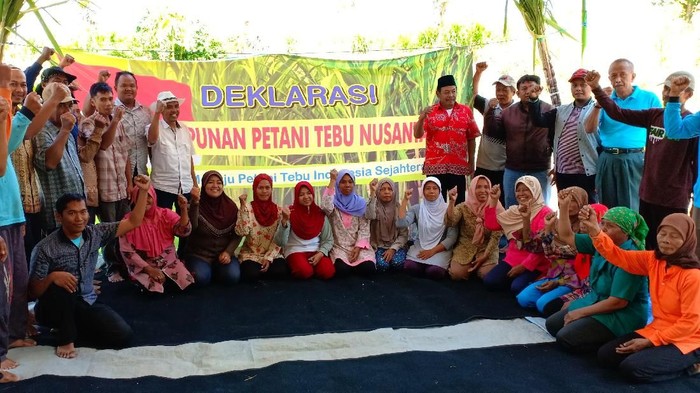 Deklarasi ratusan petani tebu daei Kediri, Tulungagung, Malang, Bojonegoro, Madiun, Blora, Banyumas, dan Boyolali, ini digelar di lahan tebu Dusun Kemuning, Desa Tiru Kidul, Kecamatan Gurah, Kabupaten Kediri, Jumat (17/8/2018).