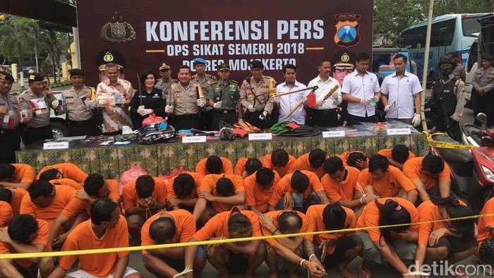 Kapolres Mojokerto AKBP Leonardus Simarmata mengatakan, dari pengungkapan 43 kasus, pihaknya meringkus 36 tersangka. Meliputi kasus pencurian dengan kekerasan (curas) 2 kasus dengan 2 tersangka, pencurian kendaraan bermotor (curanmor) 9 kasus dengan 5 tersangka.